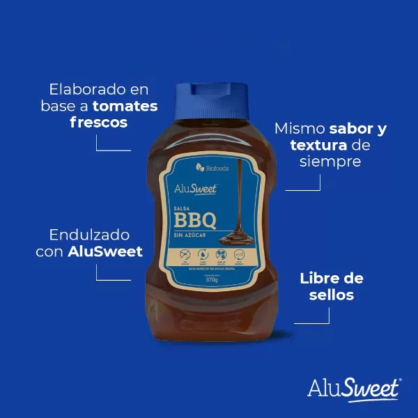 AluSweet Salsa Barbecue sin Azúcar es la alternativa perfecta para acompañar todas tus comidas de manera saludable. Elaborado en base a tomates frescos y endulzado con AluSweet, esta Salsa BBQ mantiene el delicioso sabor barbecue que tanto amas, pero sin los efectos negativos del azúcar.
