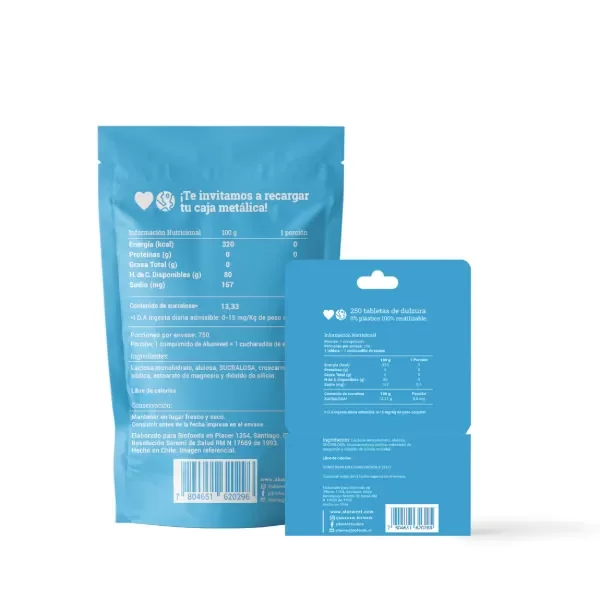 Contiene 1 Pastillero con 250 tabletas + un doypack con 750 tabletas de recarga.