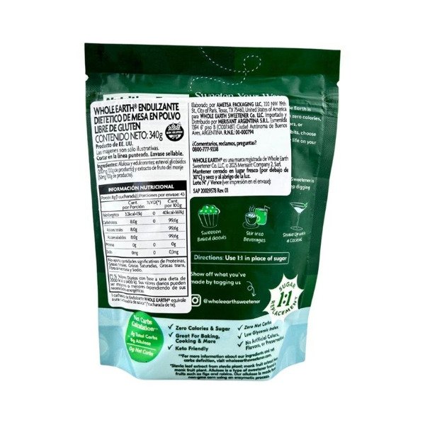 Endulzante Alulosa Stevia y Fruta del Monje Whole Earth x 340g - SIN GLUTEN