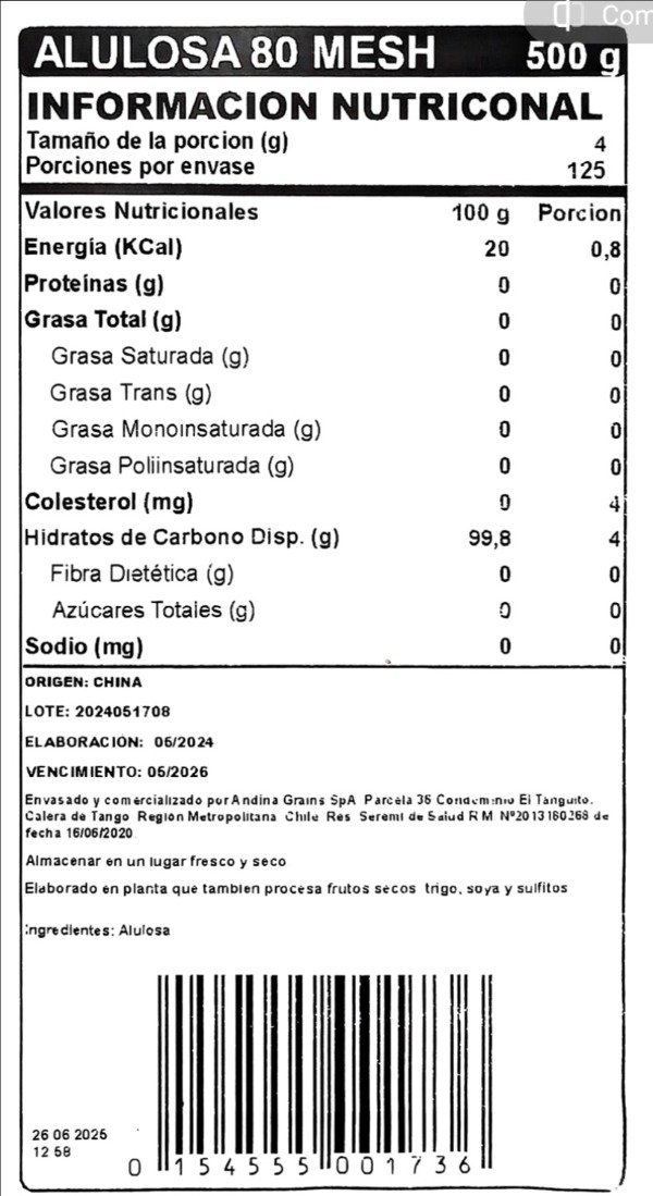 La alulosa es un azúcar poco común con la misma fórmula química que la fructosa. Debido a que el cuerpo no lo metaboliza, no aumenta los niveles de azúcar en sangre ni de insulina y proporciona un mínimo de calorías.